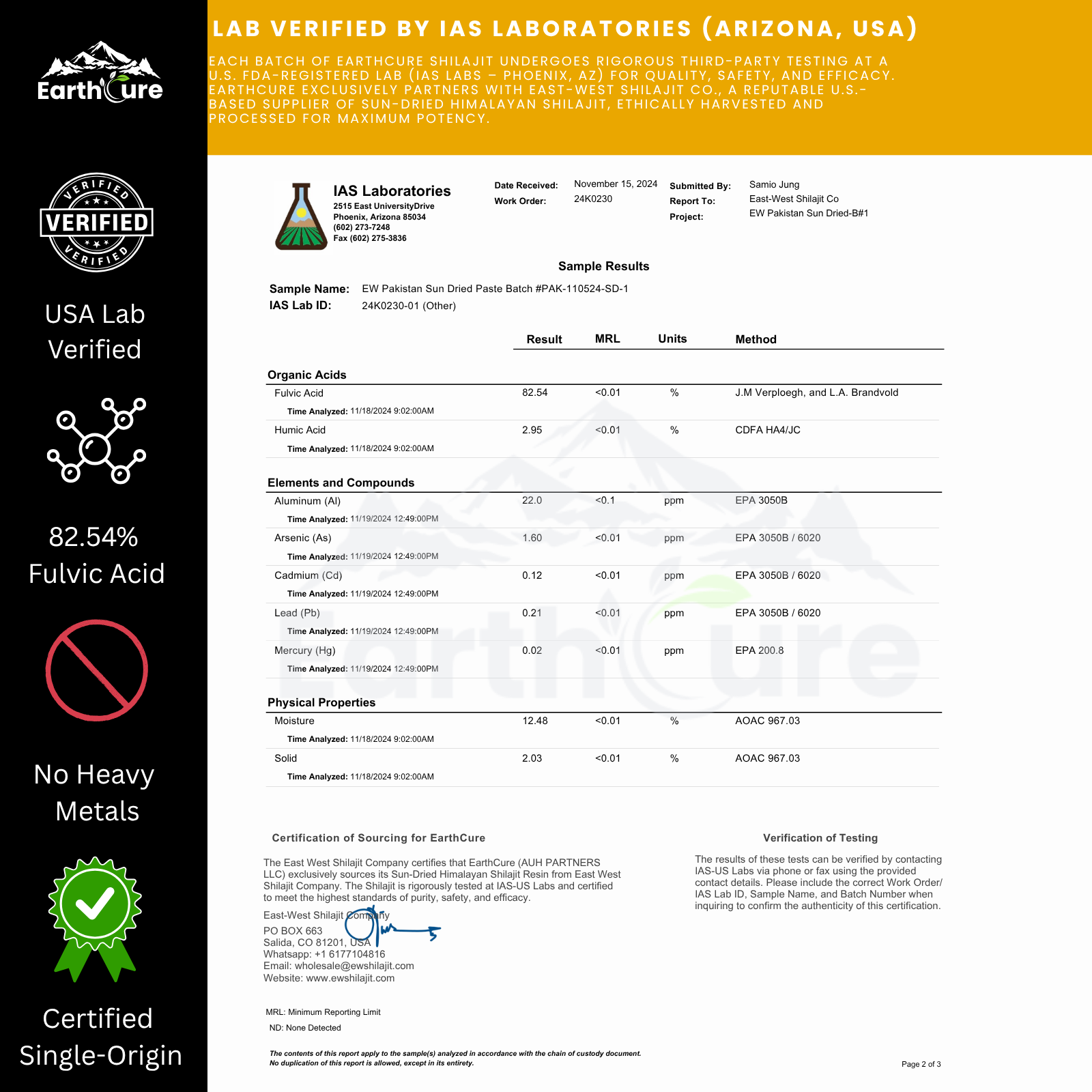 Every batch of EARTHCURE™ Shilajit undergoes rigorous third-party testing to ensure the highest standards of purity, potency, and safety.